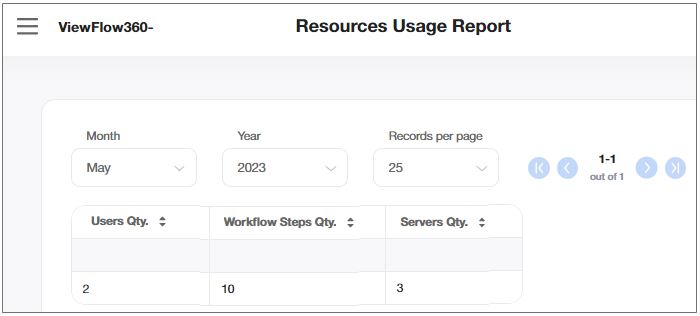 The Resources Usage Report allows you to review all data that was used in the system to get an overview of all system services used / grouped per services, dates, and users.