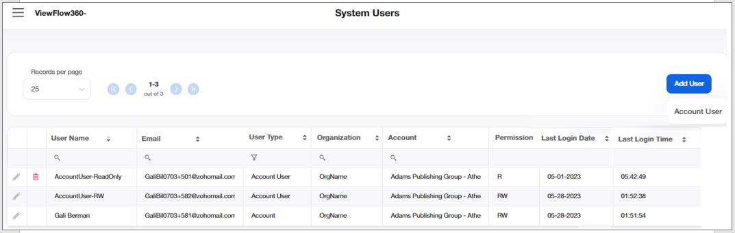 User type Account can add their respective Account Users to the system.