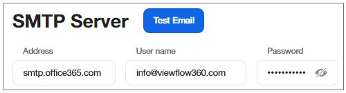Set up the smtp.office365.com email server (the server address, the user name and the password for access).