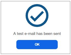 Select to send a test email to the Administrator’s notification email. Upon successful test mail, you can see the following message: