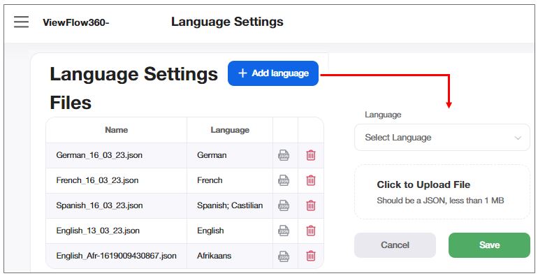 The VF360 settings decide the look and feel of the tool, from the color scheme to the language and the way the content is displayed.