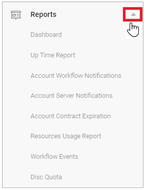 For Admin, and Global User the “Disc Quota" page is placed in the “Reports” main menu item.