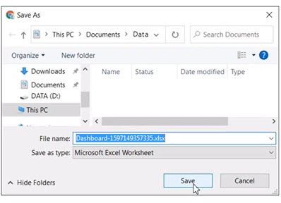 icon and saving the Excel file under a name and in a location of your choice.