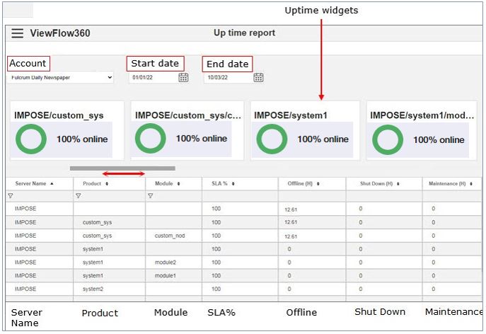 Use the horizontal scroll bar to view all the uptime widgets.