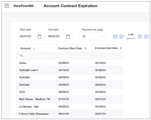 This report allows you to see the start and end date of the contract of each account.