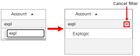 in the account column to filter the displayed accounts.