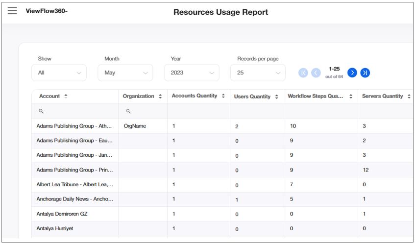 The Resources Usage Report allows you to review all data that was used in the system to get an overview of all system services used / grouped per services, dates, and users.