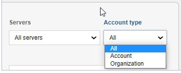 Account Types, such as All, Account, and Organization. |