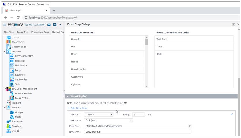 You must add and configure a new task in NewswayX to send disc quota to accumulate disc quota report.