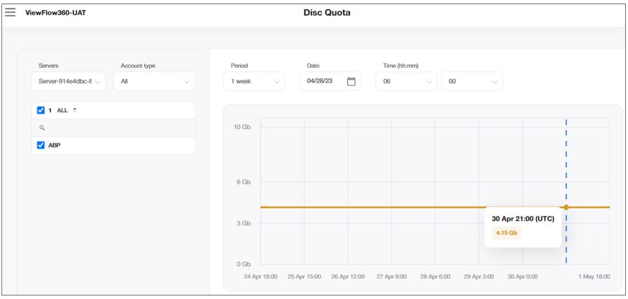 You can view the chart for either a disc quota of 1 account or the sum of disc quotas of the accounts: